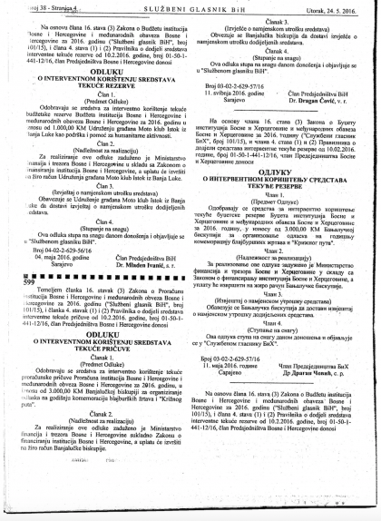 Odluka je objavljena u Službenom glasniku BiH, broj 38/24. maja 2016. godine.