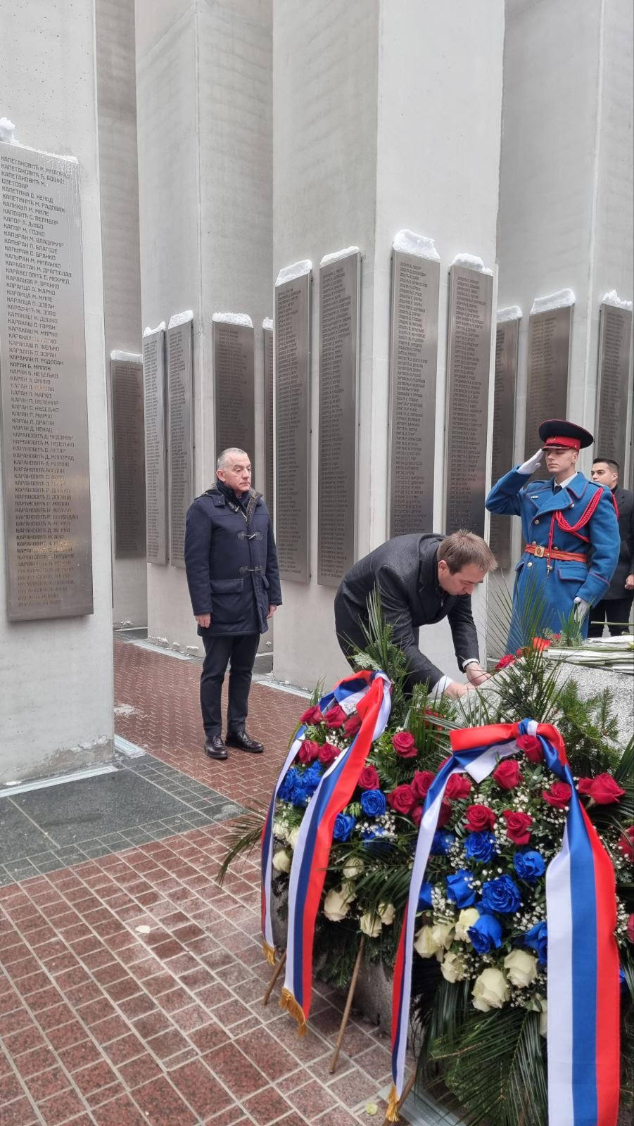 U ime Republike Srbije vijenac su položili ministar pravde Nenad Vujić i ministar kulture Nikola Selaković, ambasador Republike Srbije u BiH Ivan Todorov i generalni konzul Republike Srbije u Banjaluci Miloš Vujić.
