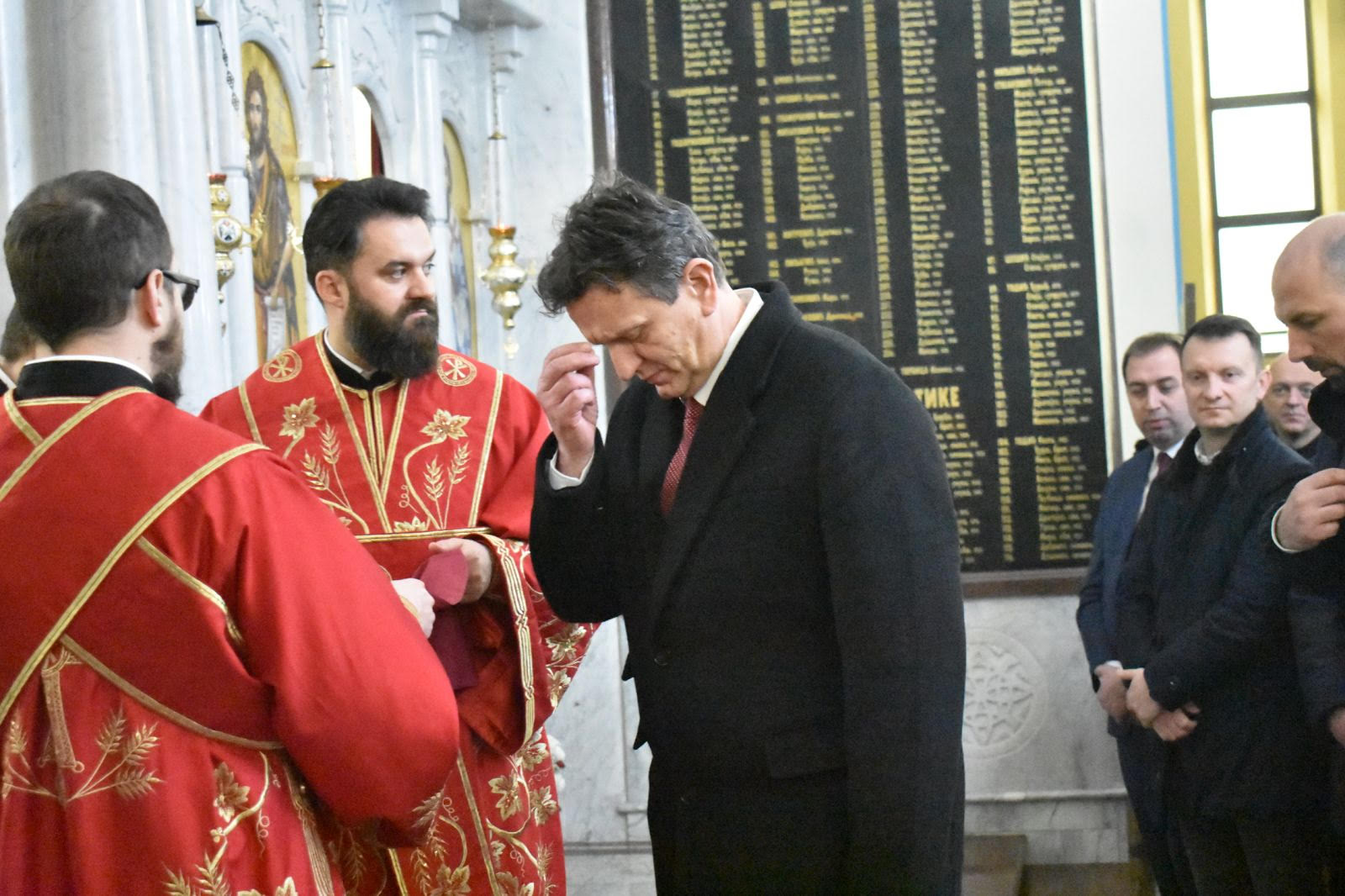 Blanuša je prisustvovao i liturgiji u Spomen-hramu Svetog velikomučenika Georgija, koju je služio vladika marčanski Sava, uz sasluženje sveštenstva Eparhije banjalučke.