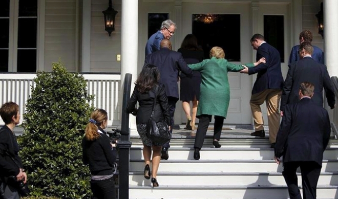 Britanski list Daily Mail ukazao je danas da izborni štab Donalda Trampa po internetu širi fotografiju na kojoj se Klintonova "okliznula na stepeništu". Ta fotografija je nastala u februaru ove godine u Južnoj Karolini, a na njoj se vidi kao je pridržavaju trojica muškaraca.