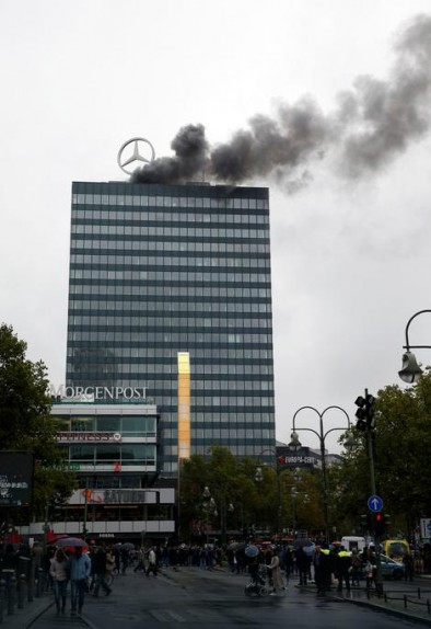 Gori toranj kompleksa zgrada Evropa Centra u Berlinu, javlja "Russia Today".