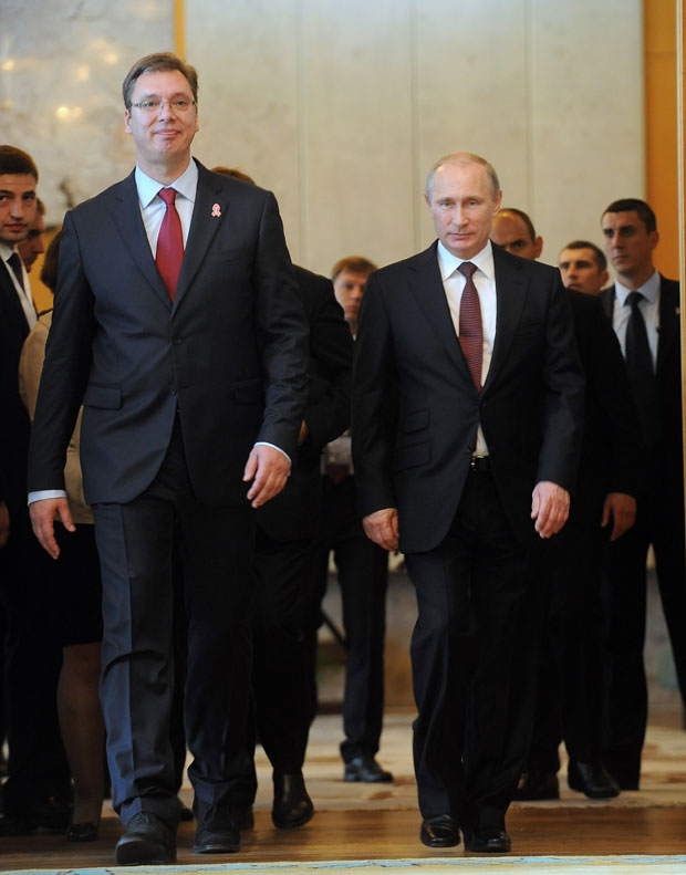 Premijer Srbije Aleksandar Vučić kaže da Srbiju često doživljavaju kao "male Ruse na Baklanu", ali i da Srbija ima svoju politiku: orijentisanost ka EU, ali ne i uvođenje sankcija Rusiji.