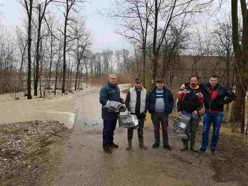 Potpredsjednik Skupštine opštine Srbac Miloš Budić i privrednik Savo Zrnić iz Razboja, danas su obišli najugroženija područja i jednom broju domaćinstava uručili ribarske čizme, koje su im neophodne da prilaze kućama opkoljenim vodom.