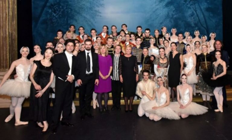 Predsjednik Hrvatske Kolinda Grabar Kitarović, nakon premijere baleta “Labudovo jezero” u Zagrebu, popela se na binu i zajedno sa ansamblom poklonila publici.