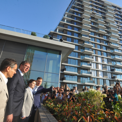 "Rad i odlučnost bile su presudna stvar, kao i posvećenost, predanost ljubav prema projektu i Srriji. Evo i danas prve zgrade, prvih 300 stanova su završeni i useljavamo ih. Gradimo veliki bulevar, dižu se dve nove zgrade, diže se najviša kula", naglasio je Vučić.