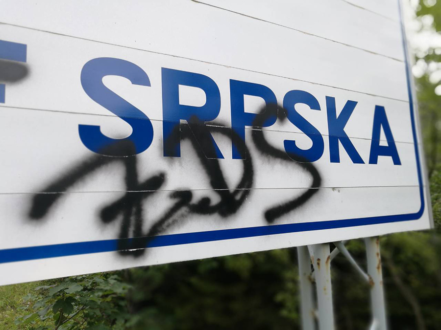 Tablu sa natpisom “Dobro došli u Republiku Srpsku”, koja se nalazi na ulazu u Mlinište na teritoriji Mrkonjić Grada, nepoznate osobe oskrnavile su natpisom “Za dom spremni”.