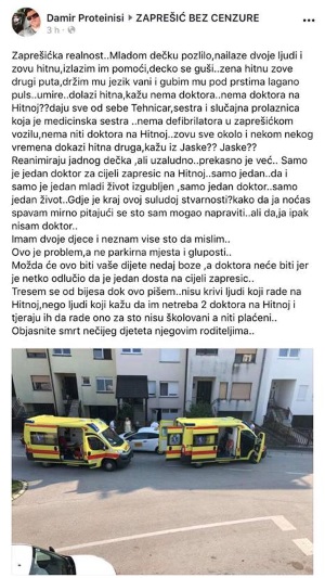 Mladiću je u poslijepodnevnim satima u nedjelju pozlilo na ulici u Zaprešiću, ali je preminuo po dolasku Hitne pomoći u kojoj su bili samo tehničar i medicinska sestra, nakon što su mu pokušali pomoći i prolaznici.