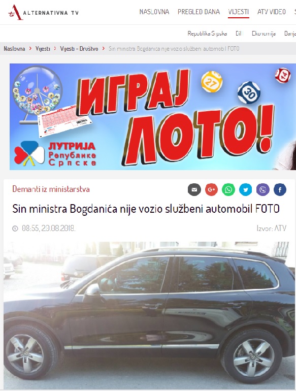 Po plasiranju ovi vijesti, jedna od portaprolskih medijskih kuća SNSD-a, Alternativna televizija, brže bolje je na svojim portalima demantovala da se radi o službenom vozilu, objavivši fotografiju spornog vozila, ali očigledno uslikanu nekih boljih dana, jer je svima onim oštrookim više nego jasno da su propratnom fotografijom svog odbrambenog teksta uskočili samo sebi u stomak i dokazali da se radi upravo o službenom vozilu Vlade RS.