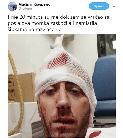 01.09.2018 16:28Vidi Vasića i idiotske face.Pa on uopšte ne krije da iza tuče stoji SNSD.Pa on ubija pogledom, koju količinu mržnje ima, njemu nisu potrebne šipke a da su naručili tuču to uopšte nije upitno.On i njegov čif (Duduk) imaju toliko pasjaluka , netolerancije, ne vas pitanja, nedostatak osnovnih ljudskih karakteristika lijepog kućnog vaspitanja, da mi je muka gledati ih na slici.Jadni novinari zarađuju svoj hljeb kako znaju i umiju ali ako ne pišu kako kome odgovara onda su meta.Ovo sve je za Dodika i Vasića normalno čak naprotiv oni su ti koji podstiču nasilje prema svakom ko ne misli kao oni.Jadna ova RS sa takvim vođama a još jadniji narod sa svojom pameću koja to neće da vidi.