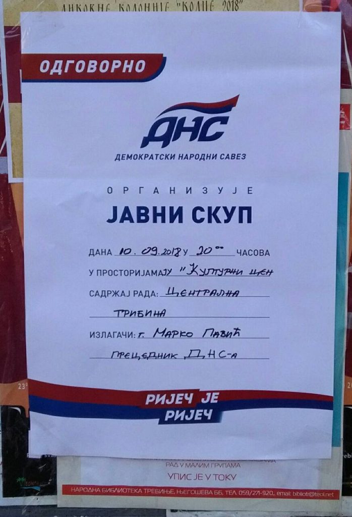 DNS ima preCednika Pavića, a SNSD ima poDpredsjednice, Željku i Marka! U trebinjskom DNS-u su uspjeli nekako da isprave preCednik i preCJednik na plakatima, jer su pisani flomasterom, ali to neće moći da urade sa poDpredsjednicima SNSD-a i drugim greškama na plakatima u Trnovu, jer su štampani sa greškom, što znači da su nepismeni kadrovici iz Centrale Partije poslali plakate sa greškama koje su ponovljene više puta.