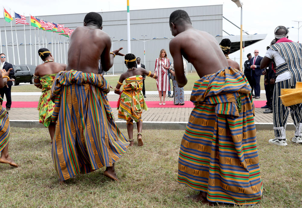 Melaniju je na aerodromu dočekala prva dama Gane koja joj je poželela dobrodošlicu, a zatim su zajedno odgledale performans tradicionalnog plesa.