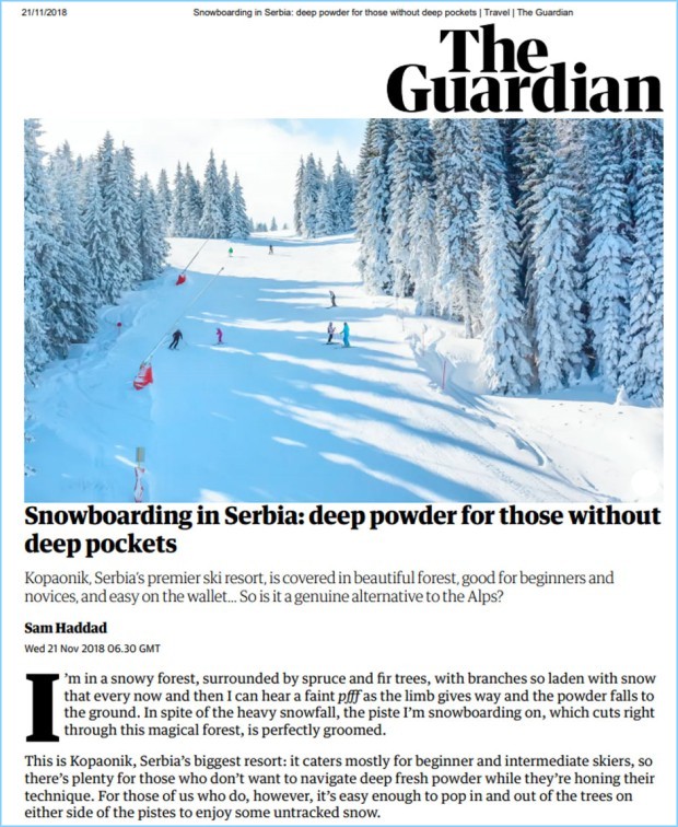 Kopaonik, glavni srpski skijaški centar je prekriven prelepim šumama, dobar je za početnike i nije skup, tako da bi mogao da bude prava alternativa za Alpe, piše britanski „Gardijan“.