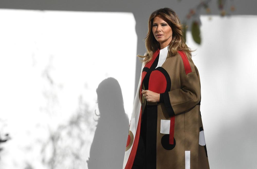 Kaput krem boje s geometrijskim oblicima, u kojem je stajala uz supruga Donalda Trampa kad je on poštedeo život dvema pticama nazvanima Peas and Carrots, izazvao je brojne komentare.