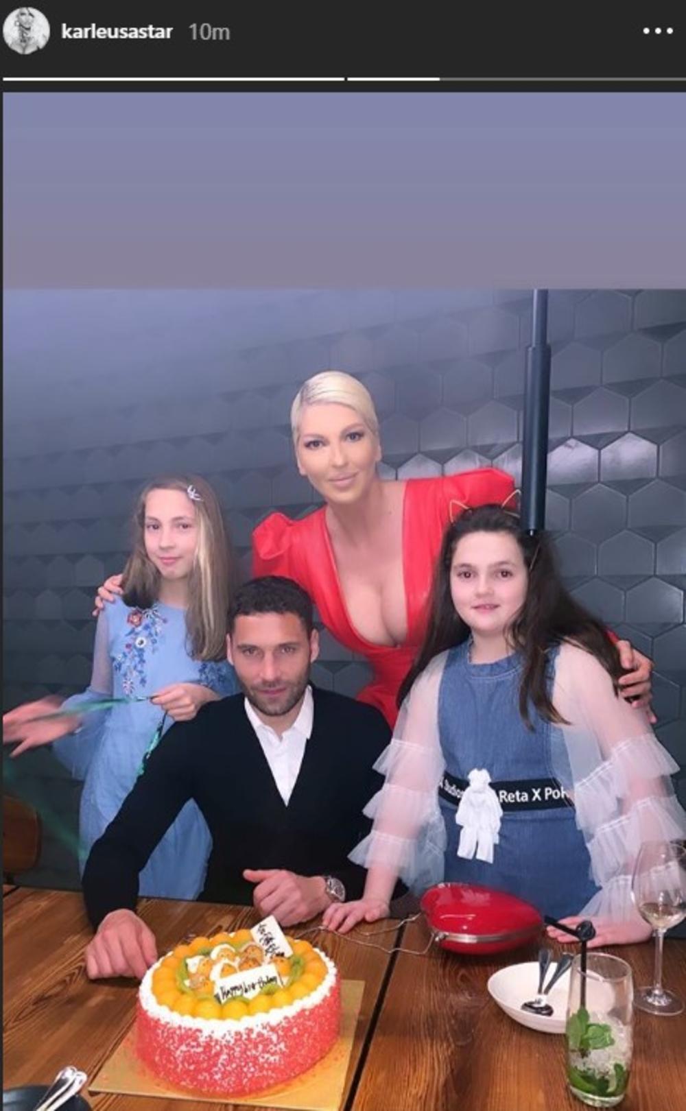 Njih dvoje su svečano obučeni pozirali za Instagram, pa su se potom slikali sa ćerkama Nikom i Atinom. Pevačica je pozirala u crvenom i istakla svoje atribute.