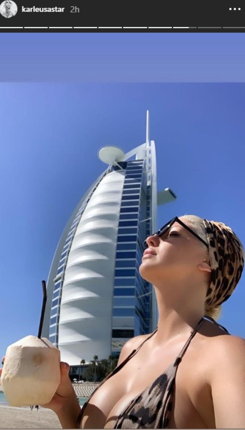 Podsetimo, nakon navodne porno afere, Karleuša je otputovala kod supruga u Kinu, kako bi sačuvala brak. Zbog poslovnih obaveza brzo se vratila u Srbiju, a nakon snimanja ZG i promovisanja svoje nove pesme "Lajk", pa nastupa na MAC ceremoniji i koncerata u Beču i Amsterdamu, Jelena se sa porodicom odmara od turbulentnog perioda u Ujedinjenim Arapskim Emiratima.