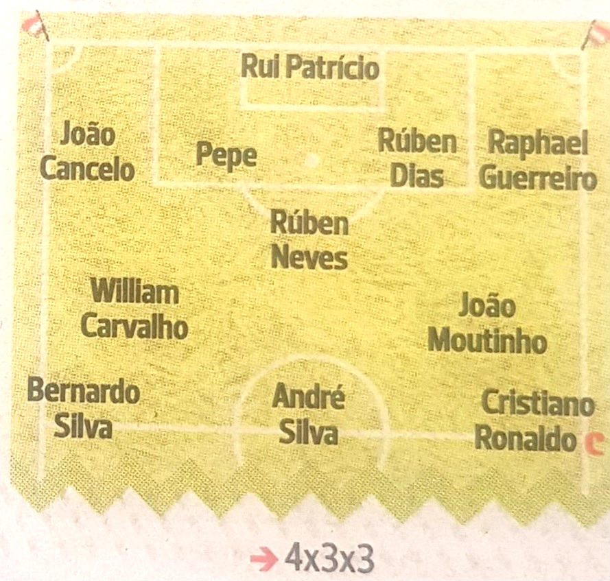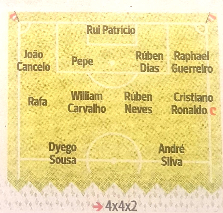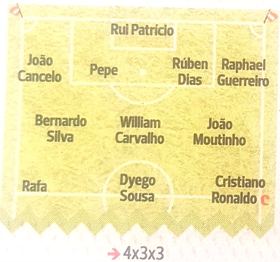 Za sada je sigurno samo da je odbrana predvođena iskusnim golmanom Rui Patrisijom "zakucana" u svakoj varijanti, a da će pored čuvara mreže Vulverhemtpona pozicije zauzeti Žoao Kanselo, Pepe, Ruben Dijas i Rafael Gerero. Sigurni su i Vilijam Karvaljo i Kristijano Ronaldo koji imaju zagarantovano mesto u svakoj mogućoj varijanti, dok ostali treba da se zamisle.