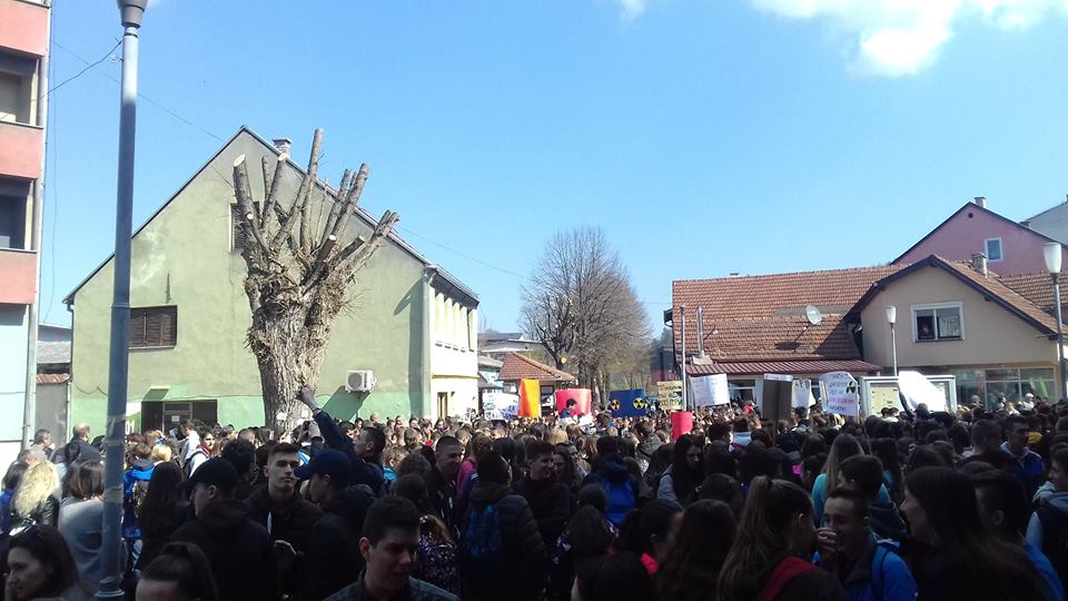 Nekoliko stotina srednjoškolaca na protestu u Novom Gradu rekli su “NE” odlaganju radioaktivnog otpada na Trgovskoj gori, u susjednoj Hrvatskoj.