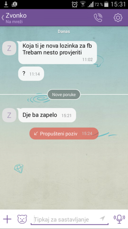 Bh. državljanin E.O. koji je direktora SOA-e izvijestio o nezakonitom postupanju njihovih uposlenika, posjeduje viber prepiske sa službenikom SOA-e koji se predstavio kao Zvonko, a u kojem mu traži šifre sa pristup njegovom facebook profilu.