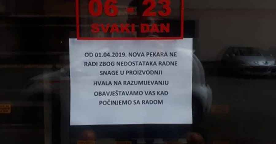 Jedan takav slučaj je i u sarajevskom naselju Stup gdje na vratima pekare stoji natpis da pekara ne radi zbog “nedostatka radne snage u proizvodnji”, prenosi TV1.