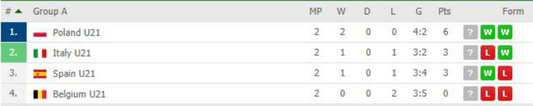 I šta sada? Šest bodova Poljska, po tri Italija i Španija, koja je danas pobedila Belgiju sa 2:1. Poslednje kolo donosi okršaj Španije i Poljske, dok Italija ima meč sa Belgijom, koja je već ispala sa prvenstva. I samo prvoplasirani sigurno ide dalje...