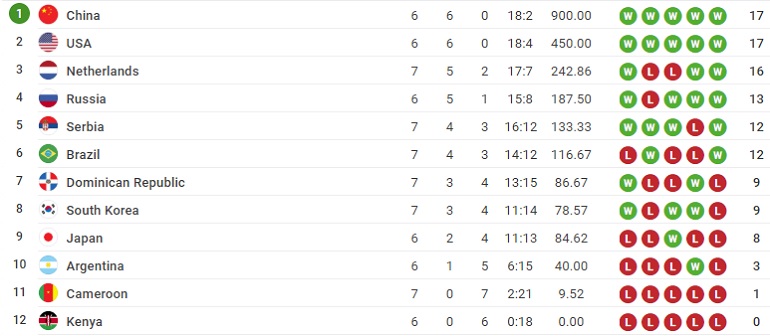 Posle Južne Koreje, Srbiju očekuju još tri meča u Saitami posle čega će biti poznat konačan plasman. Očekivano, za sada dominiraju Kineskinje i Amerikanke koje du došle u najjačim sastavima.
