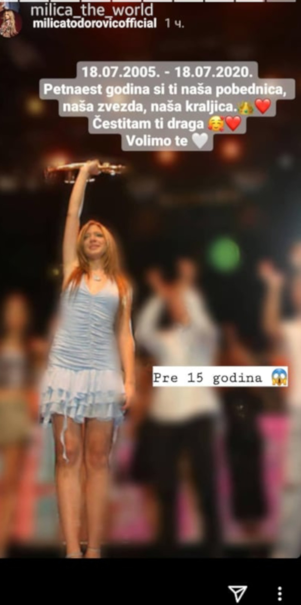 - Petnaest godina ti si naša zvezda, naša pobednica. Čestitam ti draga. Volimo te - pisalo je u objavi fanova koju je Milica podelila, a ova čestitka i datum svakako su povod za slavlje i radost, nakon tmurnih dana.