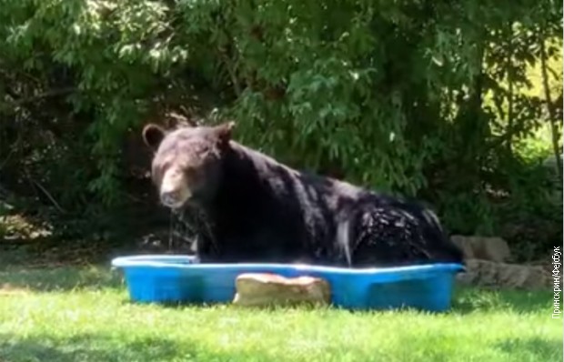 Regini Keler iz Virdžinije nije ništa neobično da spazi medveda u svom dvorištu, ali joj se posebno dopalo kada je veliki crni medved odlučio da se smesti u dečji bazenčić u njenom dvorištu.