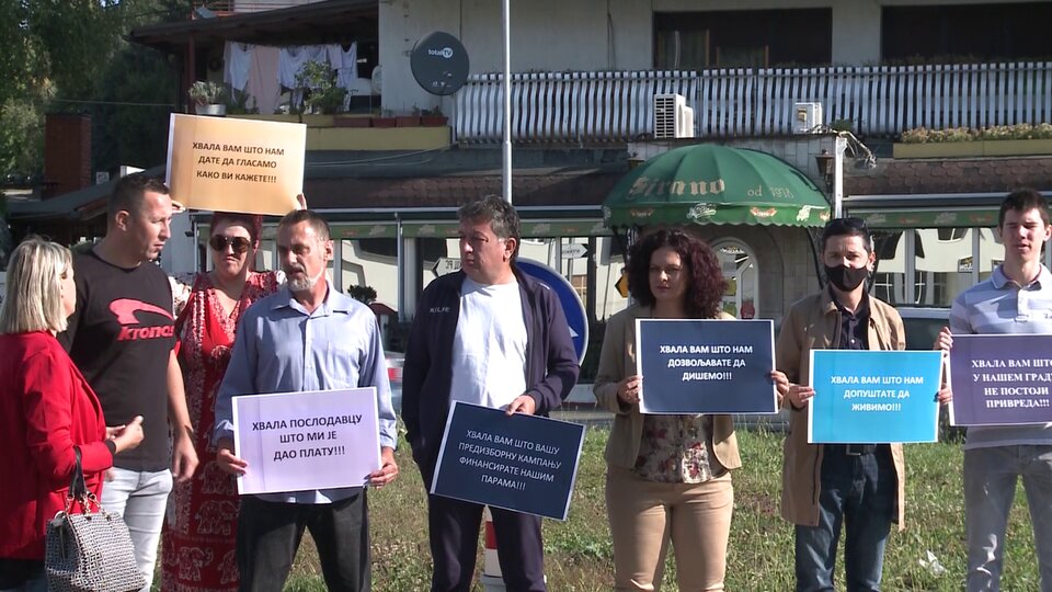 Hvala vam što u našem gradu ne postoji privreda. Hvala vam što nam dopuštate da živimo. Hvala vam što vašu predizbornu kampanju finansirate našim parama. Samo su neki od natpisa na transparentima koje su držali članovi Narodnog pokreta "Banjaluka zove".
