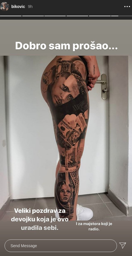 Miloš je na svom Instagramu objavio sliku na kojoj se vidi donji deo devojke koja je cela u tetovažama, ali glavni deo zauzima upravo Bikovićeva glava: