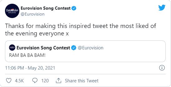 Jedan od ovakvih tvitova bio je inspirisan srpskom pesmom "Loco Loco", pa je u njemu pisalo: "Ram-ba-ba-bam", a ovo je ujedinilo ceo region, pa je tvit vrlo brzo postao najlajkovaniji od svih tokom večeri, dok se komentarima tviteraša iz Srbije, Makedonije, Crne Gore i drugih okolnih zemalja ispod ove objave ne vidi kraj.