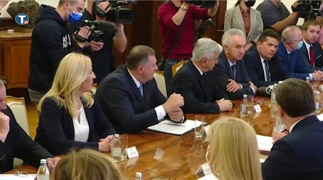 Vučić je na početku obraćanja rekao da su razgovarali o svim važnim pitanjima i da ovo nisu laki i jednostavni dani za srpski narod. Kako saznajemo vladajući iz Republike Srpske napustili su zgradu Predsjedništva, dok su lideri opozicije se zadržali još petanestak minuta sa predsjednikom Srbije.