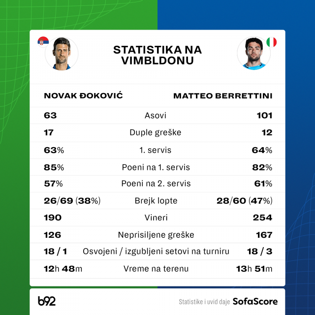 S druge strane, Beretiniju je ovo prvo grend slem finale u karijeri.