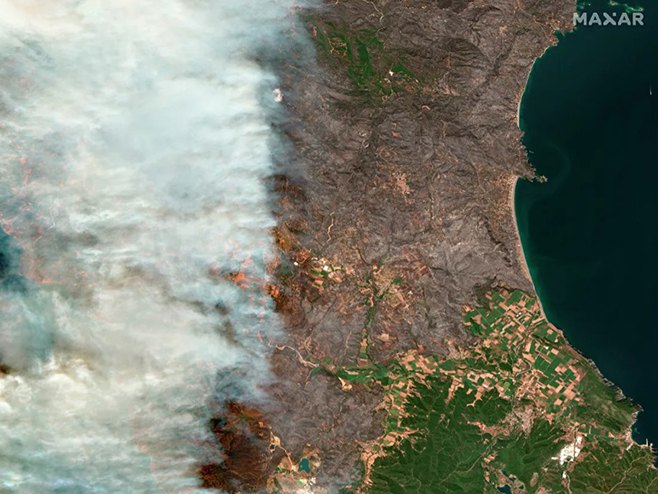Satelitski snimci požara u Grčkoj prikazuju razmjeru katastrofalne vatrene stihije koja uhištava sve pred sobom.