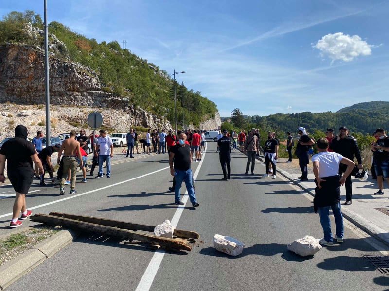 Grupa građana probila je danas policijsku blokadu koja je bila na kružnom toku, na ulazu u Cetinje, a potom su na ulicu prosuli kamenje, i tako blokirali saobraćajnicu od Podgorice do Prijestonice.