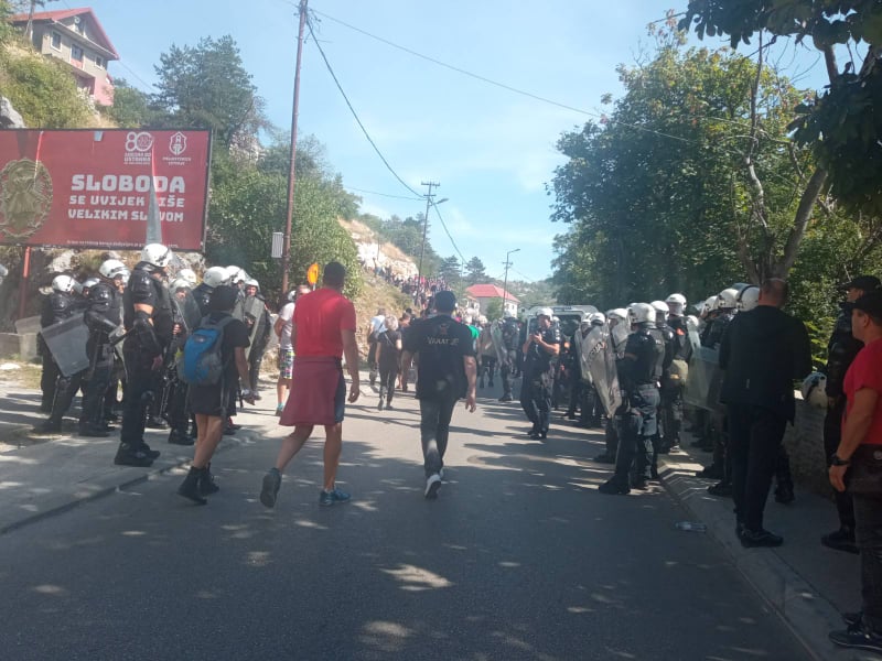 Građani su potom probili i policijsku blokadu kod stare vatrogasne, javljaju naši reporteri. Cilj blokade saobraćajnica je da se onemogući dolazak sveštenstva SPC na ustoličenje u Cetinjskom manastiru.