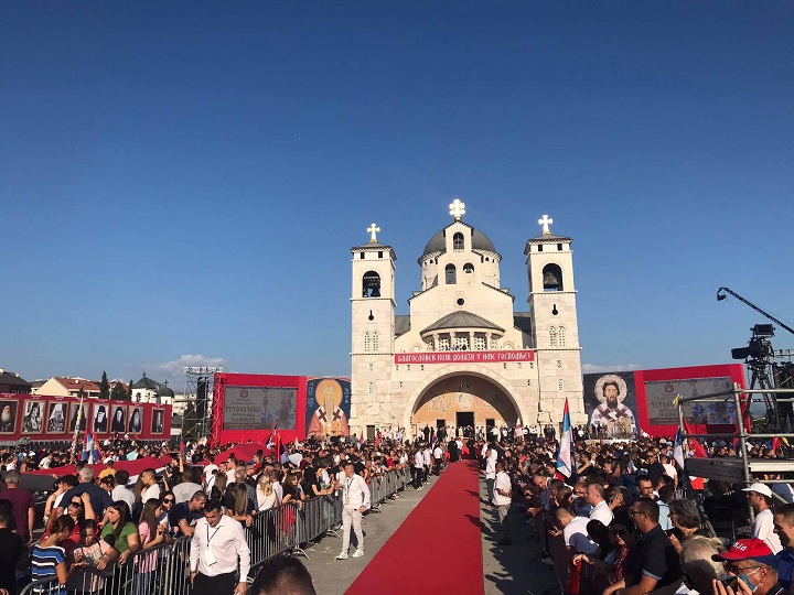 Svečanost ispred Hrama je počela, kako je i najavljeno u 18 sati. Kako je ranije najavljeno iz MCP nakon velike večernje službe biće održan bogat kulturno umjetnički program povodom ustoličenja mitropolita crnogorsko primorskog. Najavili su i dolazak vjernika iz svih krajeva Crne Gore.