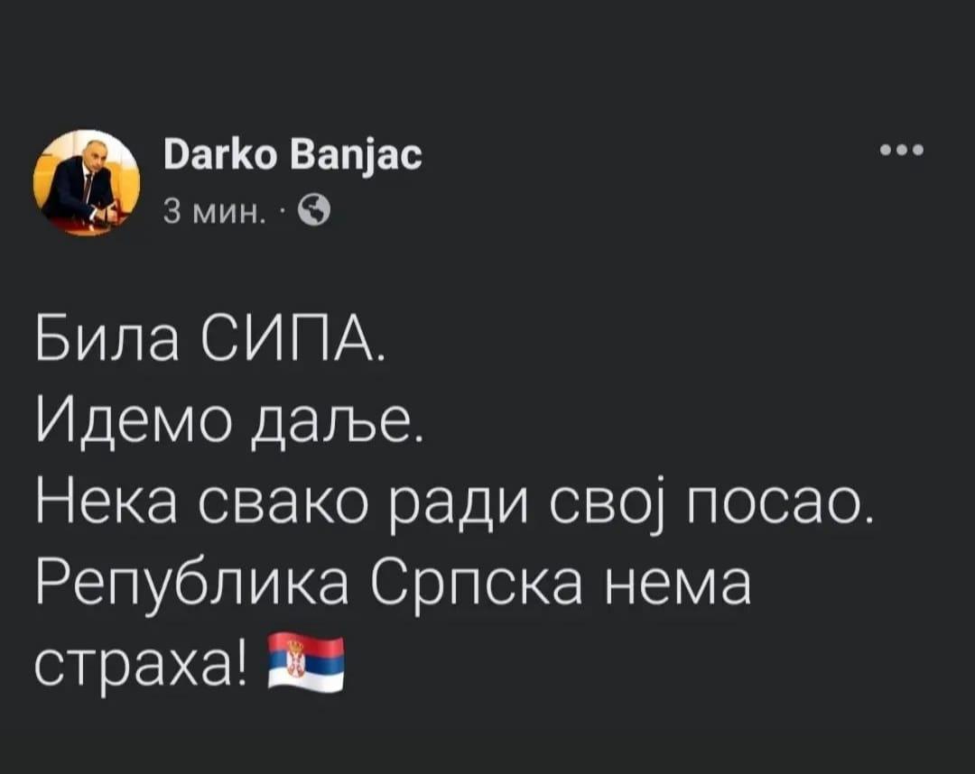 "Bila SIPA, Idemo dalje...Nema straha", napisao je Banjac.