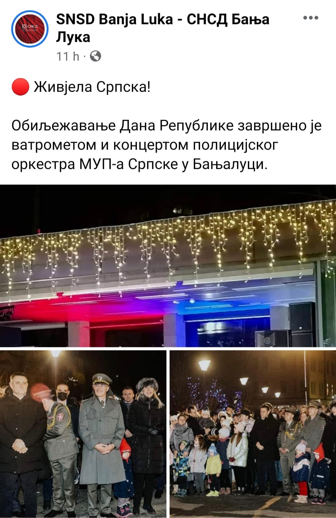 Fotografije su nastale sinoć tokom koncerta policijskog orkestra Mup-a RS i vatrometa povodom Dana Republike Srpske.
