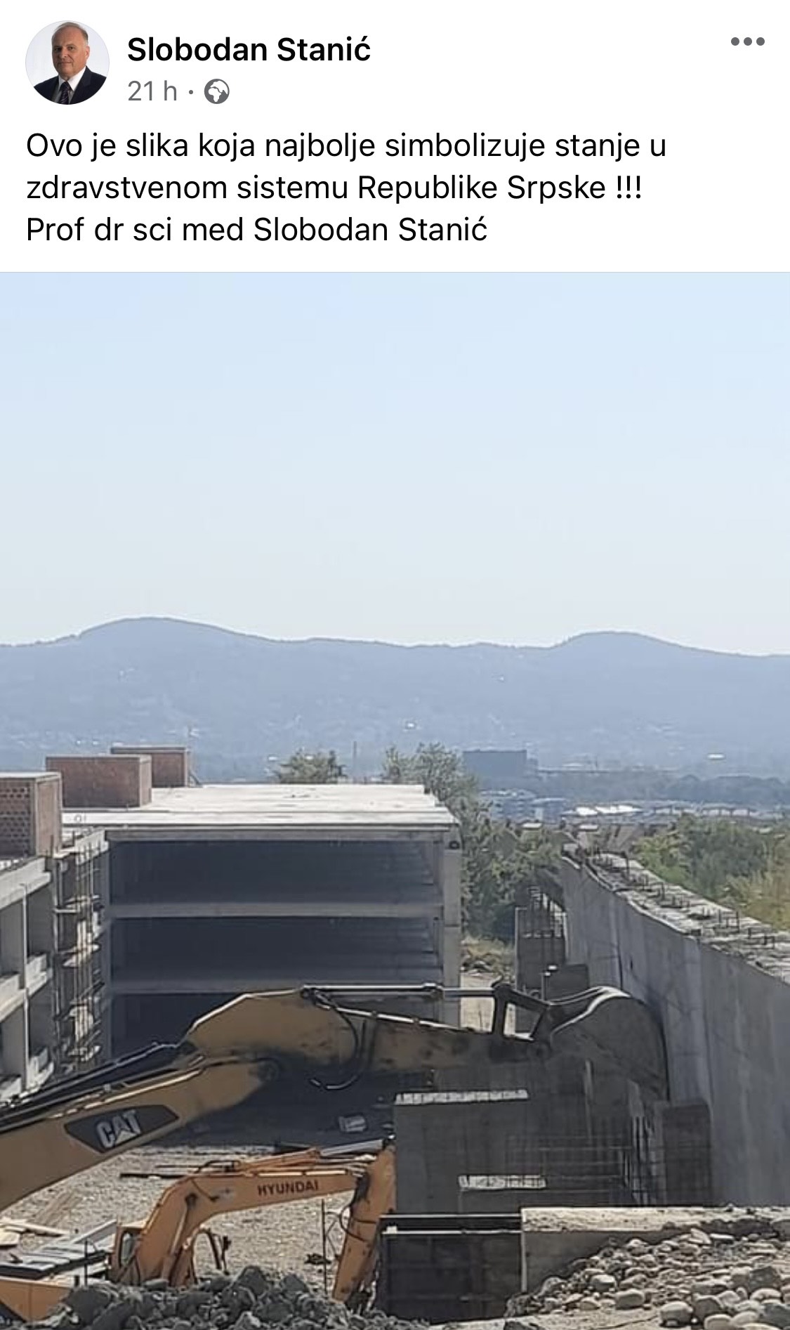 "Кada sam naveo da je ovo slika koja najbolje simbolizuje stanje zdravstvenog sistema u Republici Srpskoj, vidio sam klizište kao nagomilane probleme u zdravstvu Srpske koji se godinama ne rješavaju", napisao je Stanić na svom fejsbuk profilu.