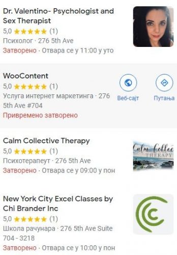 Ako se pitate kako je to moguće, radi se o virtuelnoj kancelariji čije “iznajmljivanje” košta 50 $ mjesečno, a u oglasu “iznajmljivača” na sajtu www.davincivirtual.com lijepo piše: “…Adrese poput 276 5th Avenue, Suite 704 su prestiž i podižu vaše poslovanje na viši nivo kada ga klijenti vide na vašim vizit kartama ili web stranici. Dok zamišljaju svo uzbuđenje i energiju 5. avenije, jedne od najpoznatijih ulica New Yorka, doživjeće vašu kompaniju kao uhodanu i uglednu…”
