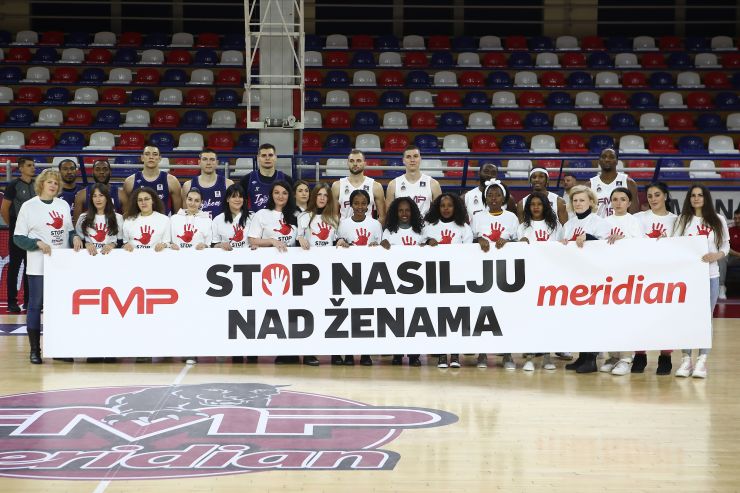 Košarkaška utakmica između FMP Meridiana i Igokee privukla je posebnu pažnju i pre početka i barem na kratko sport stavila na “pauzu”, kako bi se videla i čula važna poruka – STOP NASILJU NAD ŽENAMA.