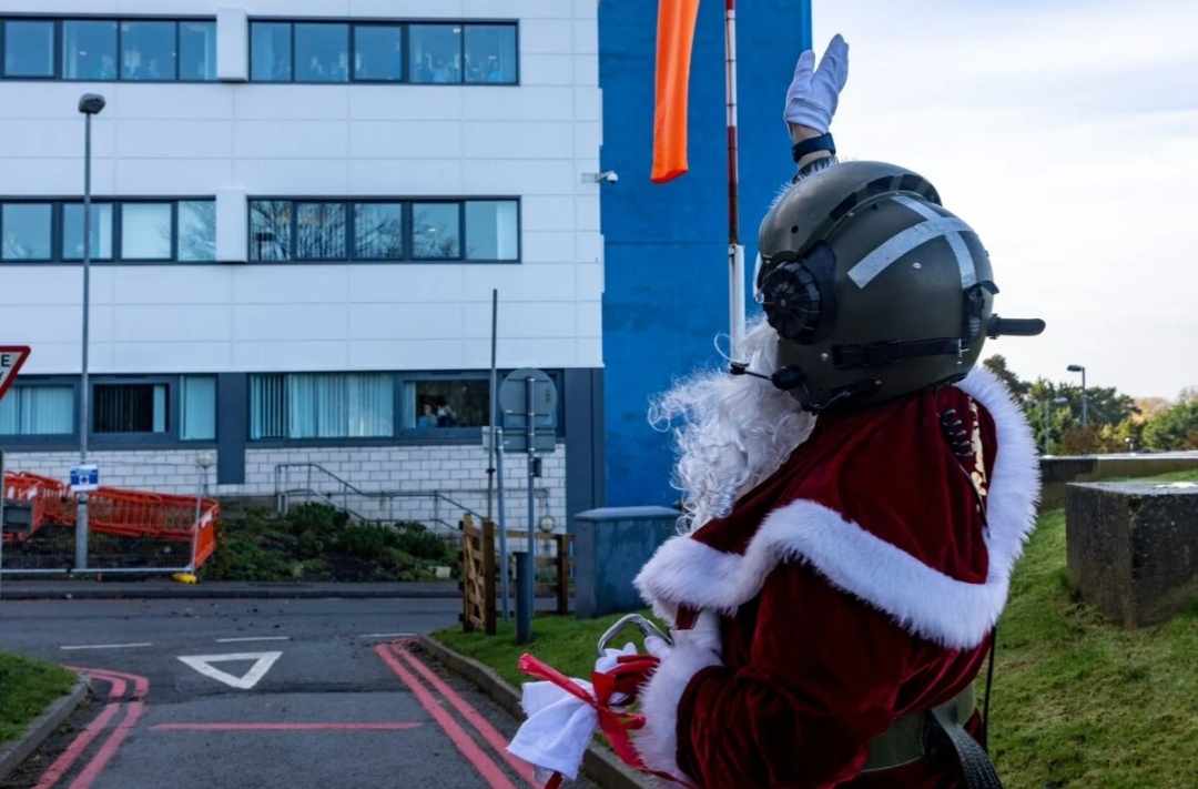 Umesto svojih tradicionalnih sanki i irvasa, Deda Mraz je u bolnicu John Radcliffe Hospital stigao RAF-ovim (Royal Air Force) Puma helikopterom.