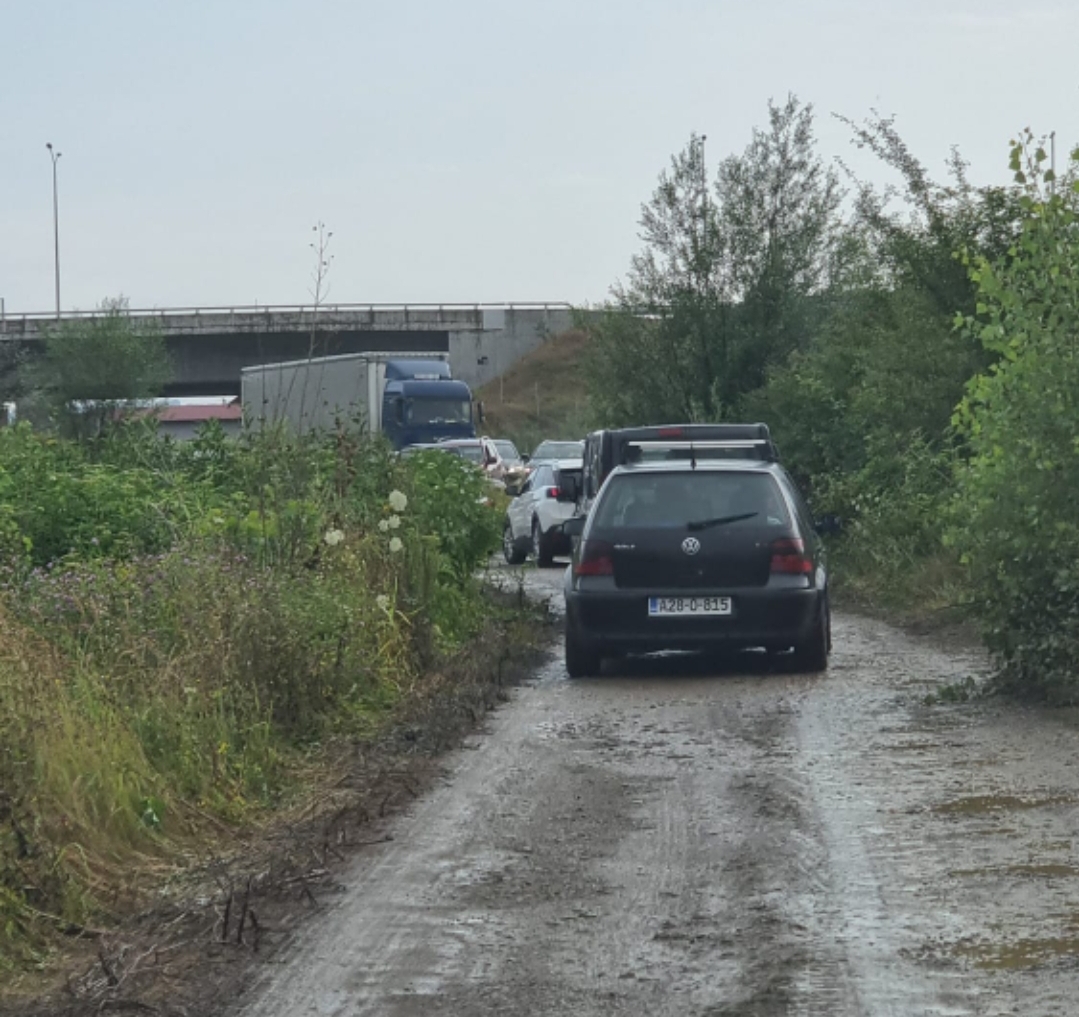 Građani čekaju u kolonama normalizaciju saobraćaja duže od sat vremena, a kako bi saobraćaj bar djelimično funkcionisao, putnička vozila se usmjeravaju kroz njive.