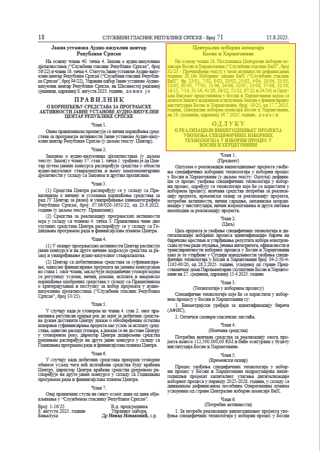 Međutim, baš i nije tako kako je on govorio. U Službenom glasniku Republike Srpske od 15. avgusta Kristijan Šmit navodi se kao zakonodavac, a njegovi akti pišu se velikim slovom.
