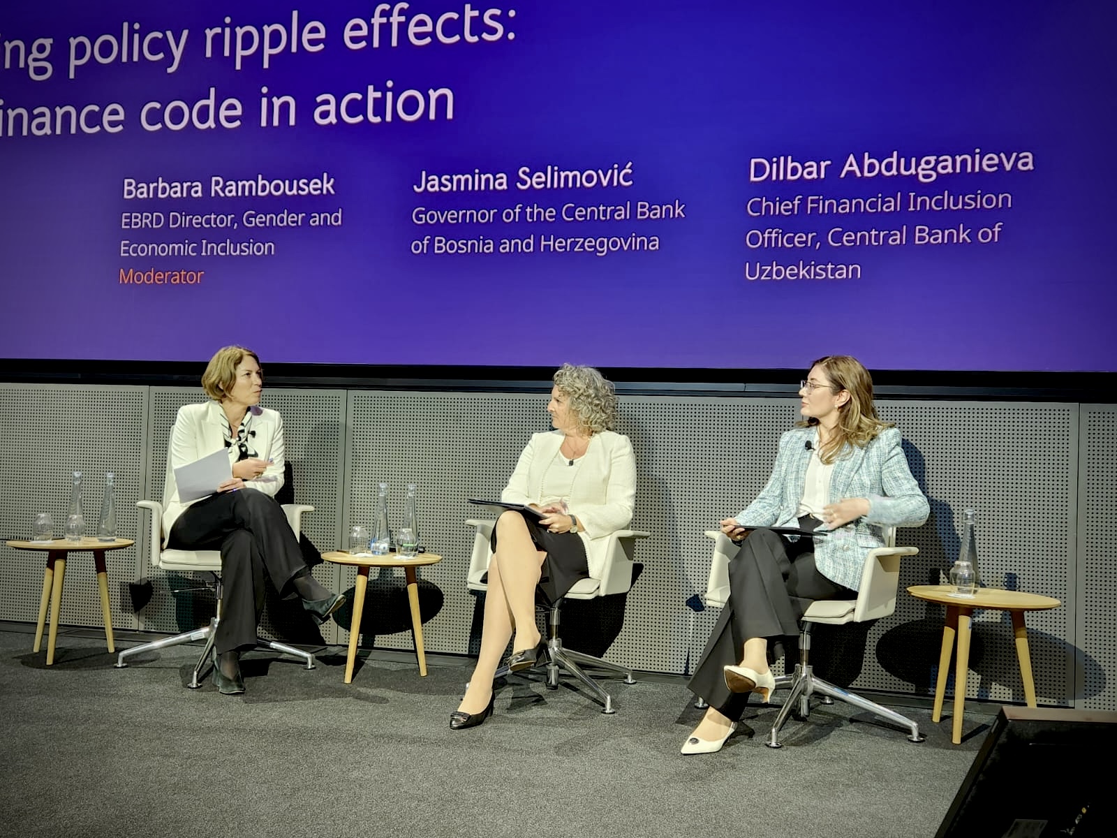 Guvernerka je naglasila da „Inkluzivne ekonomske politike stvaraju uslove u kojima svi članovi društva imaju jednake šanse da doprinesu i ostvare svoje potencijale. Omogućavanjem ženama ravnopravnog pristupa finansijama, otvaraju se nova radna mjesta, podstiču inovacije i jača konkurentnost privrede. Time se ne samo unapređuje ekonomska stabilnost, nego i gradi društvo zasnovano na jednakosti i održivom rastu, što je u potpunosti u skladu sa evropskim integracionim procesima Bosne i Hercegovine.“