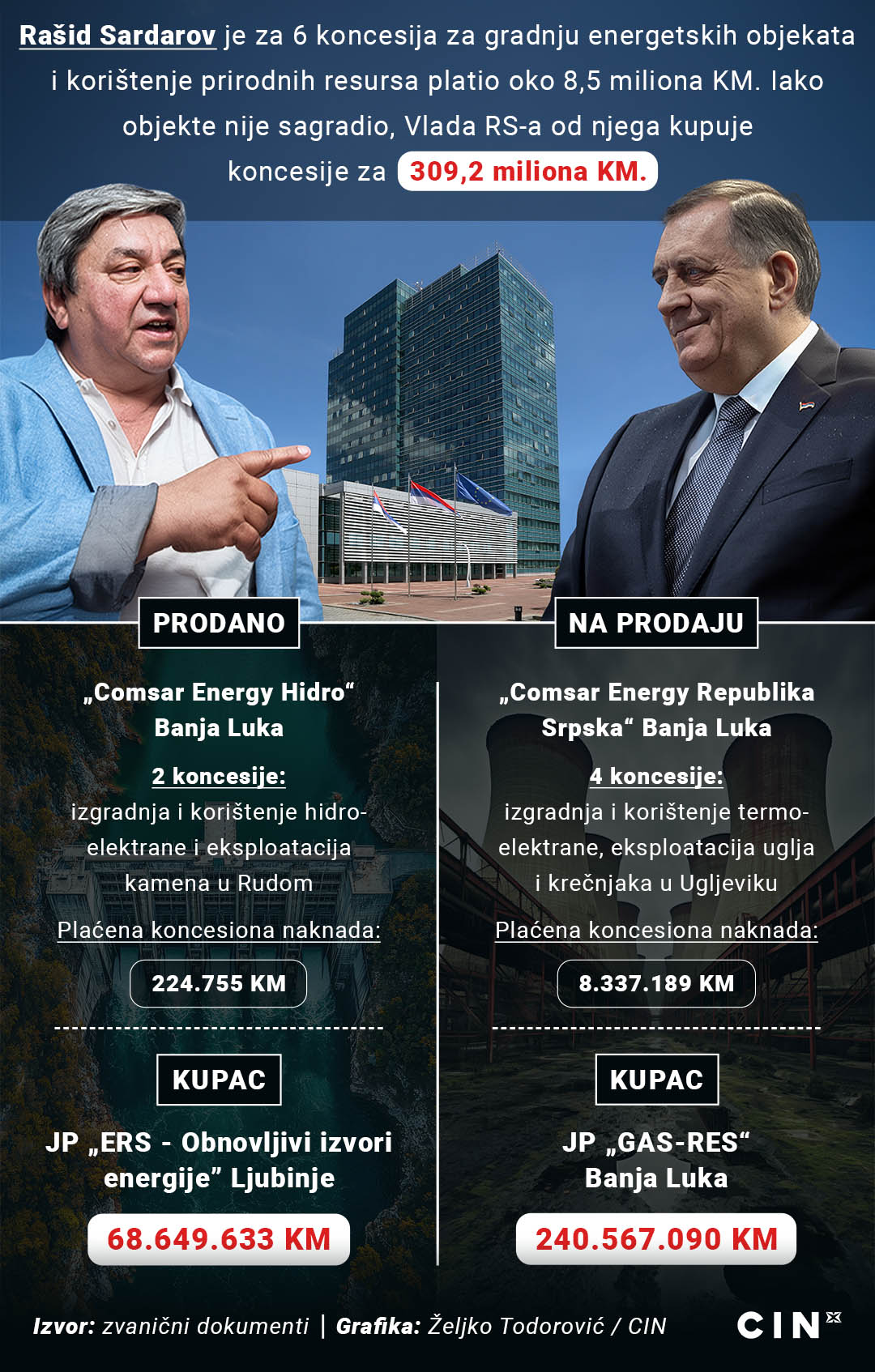 Prema dokumentima koji su u posjedu CIN-a, pregovori sa Sardarovom su formalno počeli 2022. kada je pismom namjere ponudio partnerstvo „Elektroprivredi Republike Srpske“, što je shvaćeno kao ponuda za prodaju projekata te su u tom cilju organizovani sastanci u institucijama.