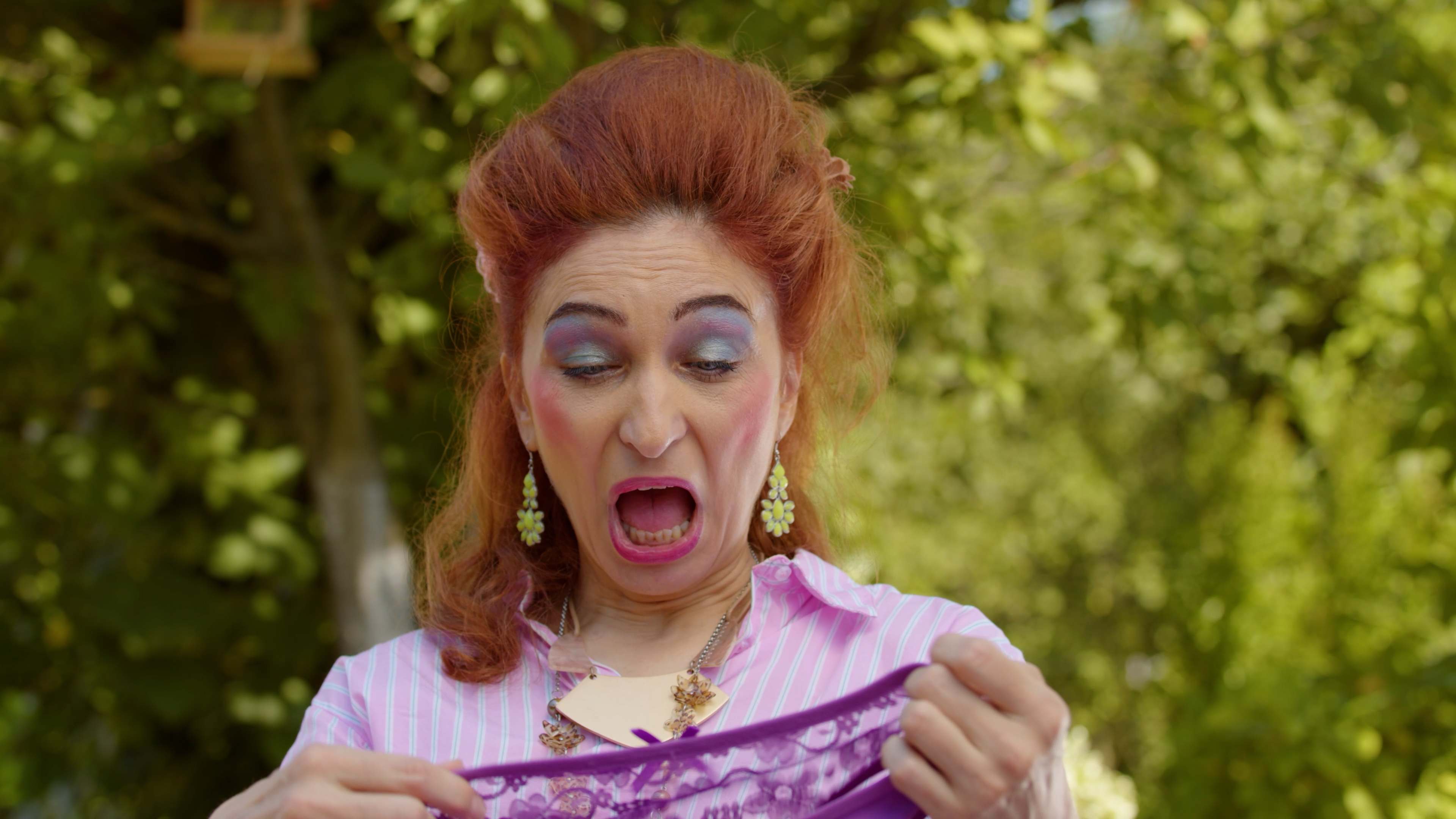 Jelka u svojoj sobi pronalazi - LJUBIČASTE GAĆICE. Da, dobro ste pročitali. Ljubičaste. Gaćice. U sopstvenoj sobi. Optužbe pljušte, Čedo se preznojava, a Jelka ga napada da je dovodio neku „tajanstvenu“ u njihovu spavaću sobu. Komšiluk već šapuće, a mašta radi punom parom.