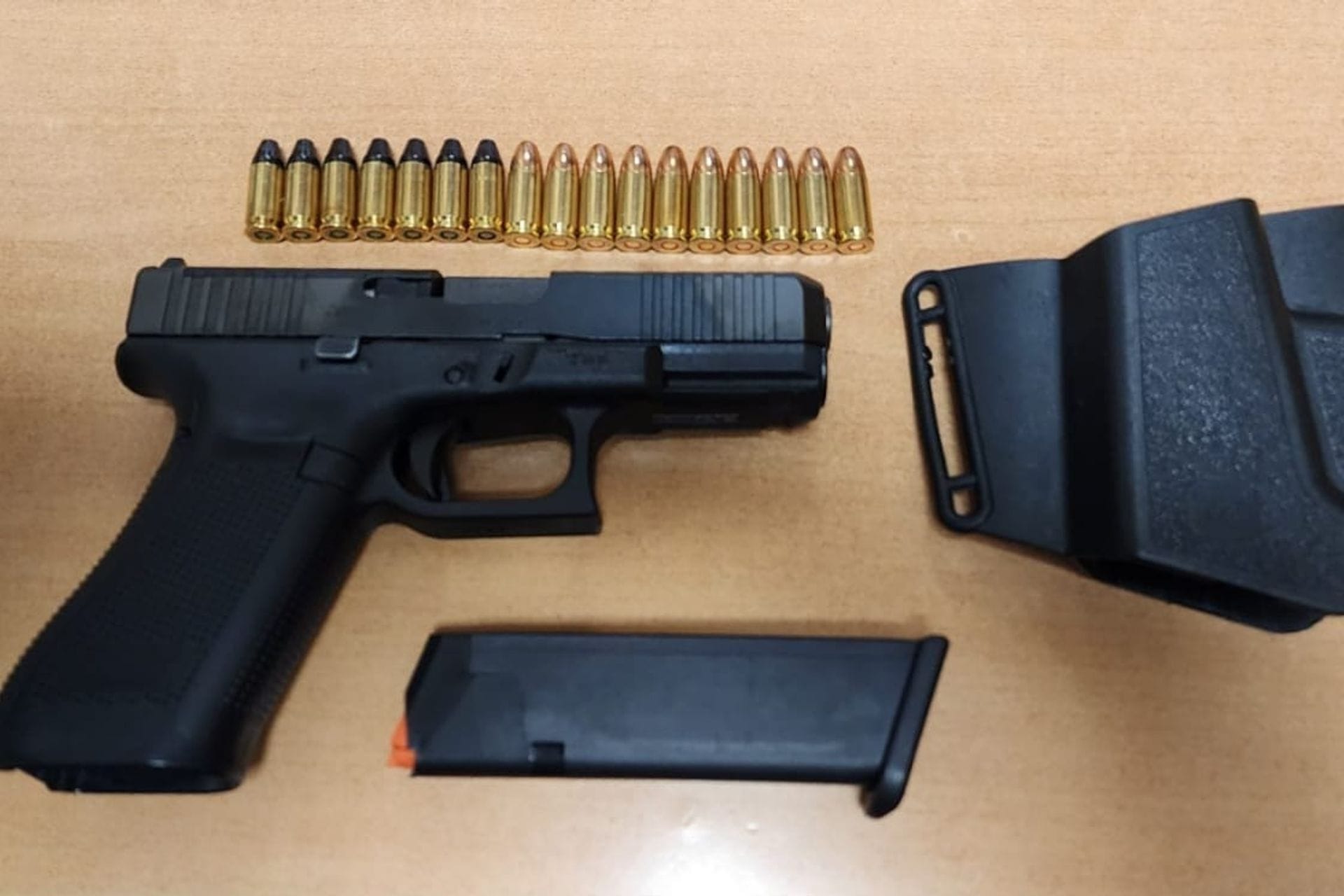 Pregledom lica i vozila, u prtljažniku, u putnoj torbi ispod garderobe, pronađeno je vatreno oružje – pištolj marke „Glock 45 FS“, sa okvirom i 17 komada pripadajuće municije.