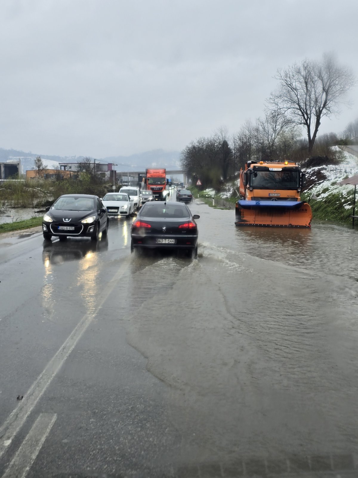 U mjestu Pločnik kod Doboja, u blizini uključenja na auto-put i na svega nekoliko kilometara od Doboja, saobraćaj se zbog vode na kolovozu obavlja naizmjenično, potvrđeno je BN-u u telefonskim razgovorom u Odjeljenju za civilnu zaštitu.