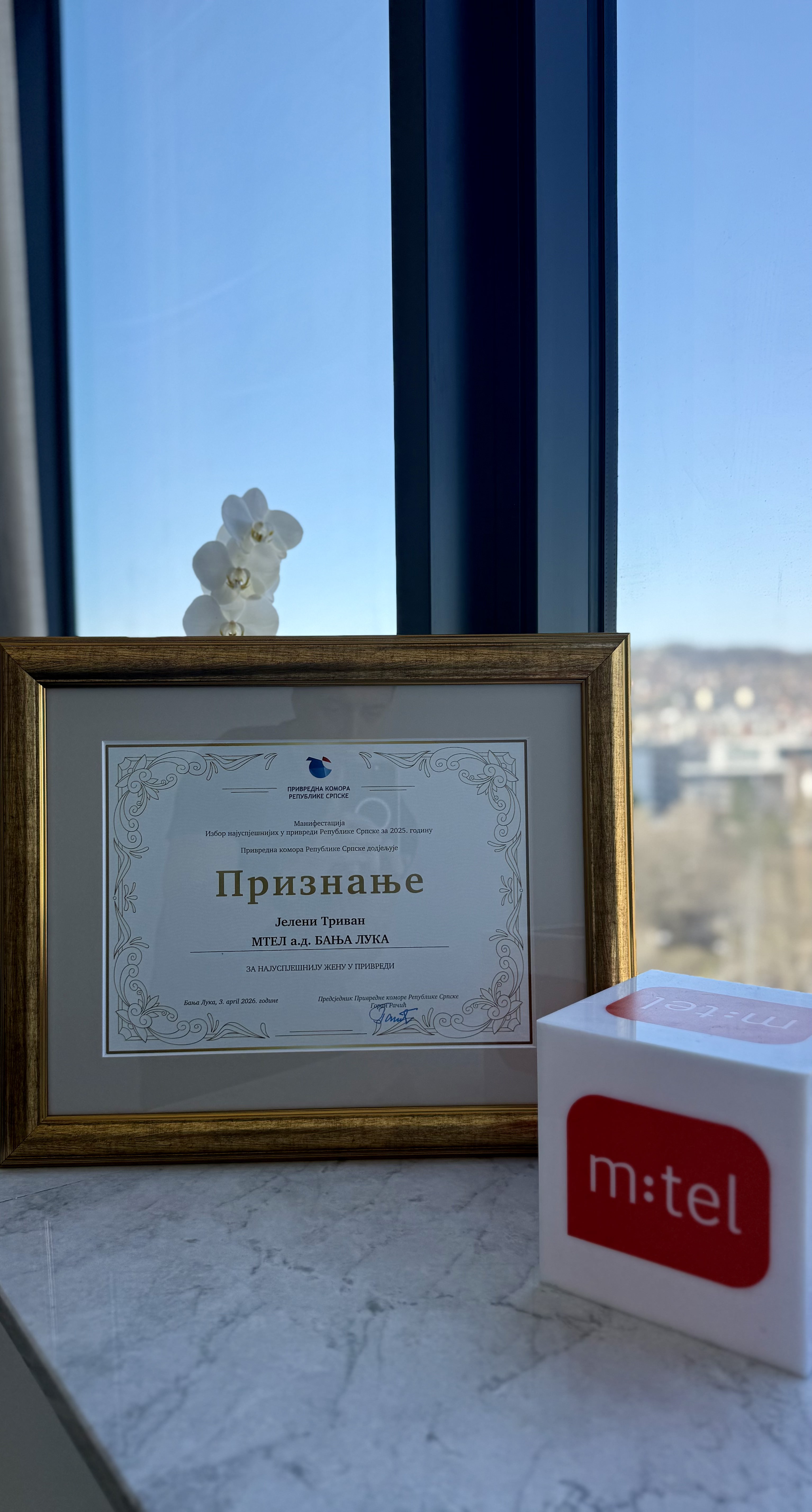 Kompanija m:tel ostvarila je još jedno značajno priznanje u domaćoj poslovnoj zajednici. Generalnoj direktorki Jeleni Trivan dodijeljeno je priznanje za najuspješniju ženu u privredi Republike Srpske za 2025. godinu, u okviru tradicionalnog izbora Privredne komore Republike Srpske.